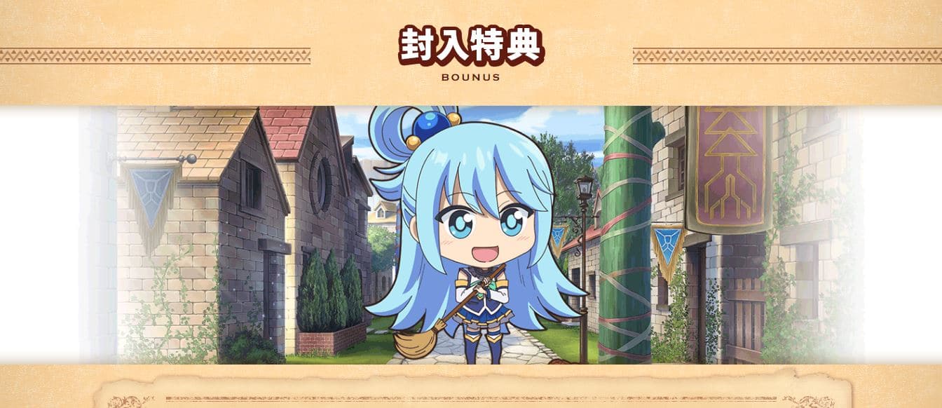 Ademรกs, todas las versiones del juego incluirรกn como bonus el videojuegoย ย Kono Subarashii Sekai ni Shukufuku o!ย Kono Damegami ni Kyลiku o!