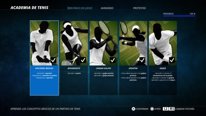 Comencemos con la Academia de Tenis, en este modo tendremos disponibles ejercicios para dominar los fundamentos del juego y del deporte, ideal para aquellos que no tienen ningún conocimiento base del Tenis. Desde lo básico de golpear la pelota, hasta identificar en que momento realizar cada golpe para alcanzar una buena sincronización y obtener el punto.