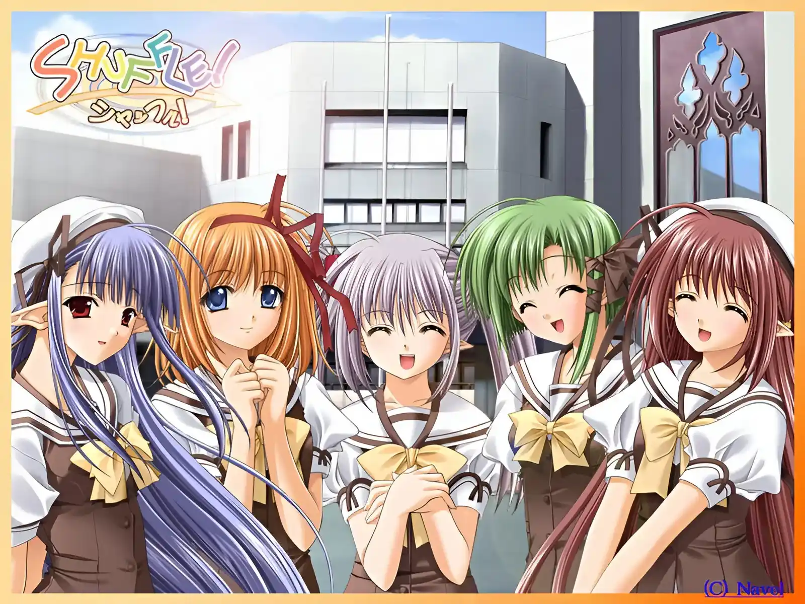 Shuffle es la primera novela visual y el primer paso de la desarrolladora, Navel de adentrarse en el territorio de un género que estaba en su edad de oro, pero cuya competencia era más que dura, ya que por recordar algunas novelas que ya se ganaron el cariño de los fans podemos mencionar: AIR, Kanon, Fate Stay Night y Tsukihime, estás últimas siendo desarrolladas por Type Moon y que se volvieron un boom a nivel mundial, especialmente, Fate Stay Night que sin ser secreto para nadie, a día de hoy es una de las franquicias más grandes en el mundo de los videojuegos/animes japoneses.