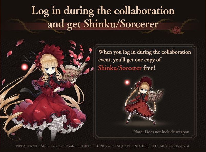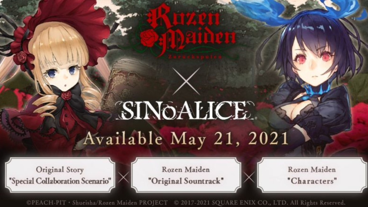 A través del sitio web oficial del videojuego SINoALICE, se reveló que realizará una nueva colaboración con la franquicia Rozen Maiden. Esta colaboración empezará este 21 de mayo de 2021.