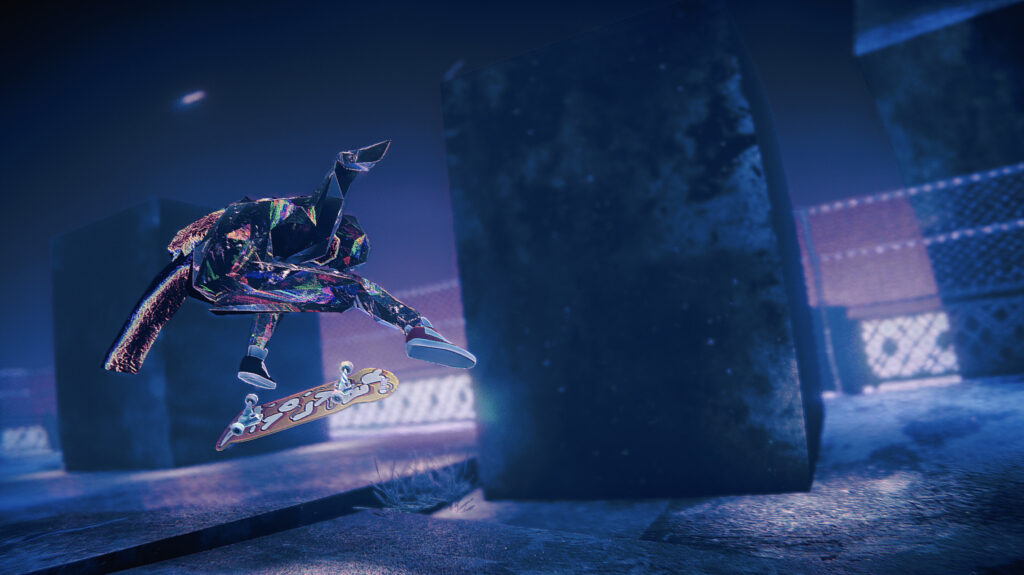Haz ollie, kickflip y muévete a través de las cenizas y el humo de The Emptylands mientras emprendes una misión aparentemente imposible. Aprende a dominar tu peso y movimiento para conquistar el concreto lloroso. Saborea la belleza ritualista mientras preparas tus pies para hacer un kickflip perfecto.