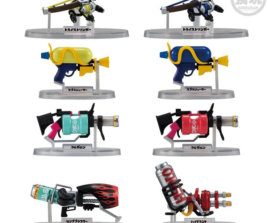 El nuevo merchandising viene de la mano de Bandai, veterana en vender pequeñas réplicas, figuras o gashapones de animes y videojuegos. En este caso, las protagonistas son algunas de las armas más populares que podemos usar en los videojuegos de Splatoon, siendo ideales para decorar la estantería de los fans de esta franquicia.