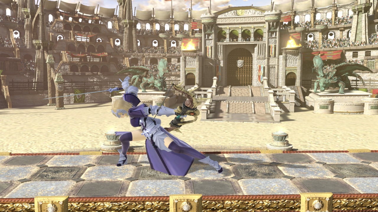 ¿No sabes cuál escenario elegir? Por primera vez en la serie, puedes elegir la opción «Escenario cambiante» para que el escenario cambie repentinamente durante los combates. Además, los nuevos Combatientes Eco, Samus Oscura, Richter Belmont y Chrom se unen al combate.