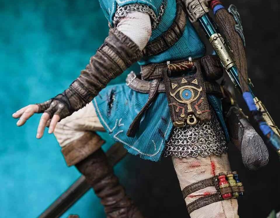 Como podemos ver en las imágenes, se trata de un trabajo de una calidad enorme, destacando las diferencias visuales entre los distintos materiales que componen las vestimentas que lleva la versión de Breath of the Wild de Link; desde el harapo que sirve para atar las armas que carga Link a sus espaldas hasta ellas mismas,