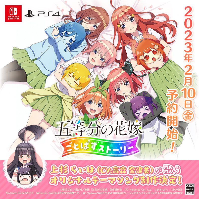 En esta ocasión, la popular seiyuu Natsumi Takamori quien interpretará el opening del videojuego The Quintessential Quintuplets: Gotopazu Story, aún no se tiene información sobre el nombre de la canción ni tampoco hay un tráiler. De seguro tienes muy presente a la seiyuu que cantará el opening del videojuego, pues se trata de la voz de la hermana de Fuutaro, Raiha, la cual también será la encargada de enseñarte a jugar.