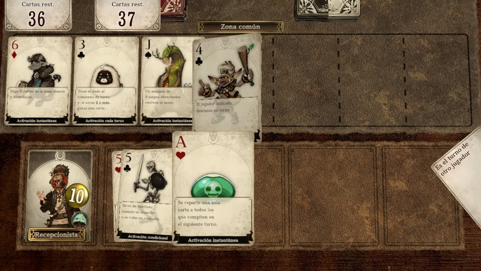 En cualquier momento de nuestra partida podremos tomar un descanso de la historia e iniciar un combate de naipes contra NPCs o jugadores online en el apartado de Sala de juegos en los siguientes modos: