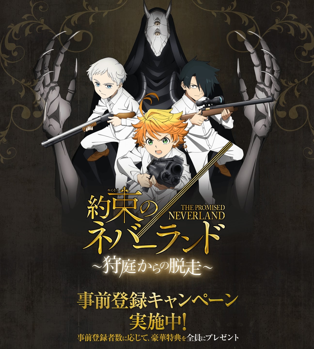 Mediante la página web oficial de CyberAgent anunciaron este 22 de febrero que el juego para móvil del anime Yakusoku no Neverland se estrenará esta primavera. El juego llevará por nombre Yakusoku no Neverland ~ Kariniwa Kara no Dass® estando disponible para iOS y Android.