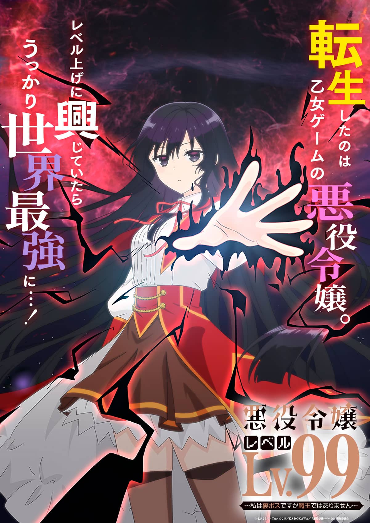 Un reporte realizado por la editorial Kadokawa confirmó la producción de una adaptación a serie de anime para la novela ligera Villainess Level 99: I May Be the Hidden Boss but I’m Not the Demon Lord (Akuyaku Reijou Level 99: Watashi wa Ura-Boss desu ga Maou dewa Arimasen) escrita por Satori Tanabata e ilustrada por Tea.