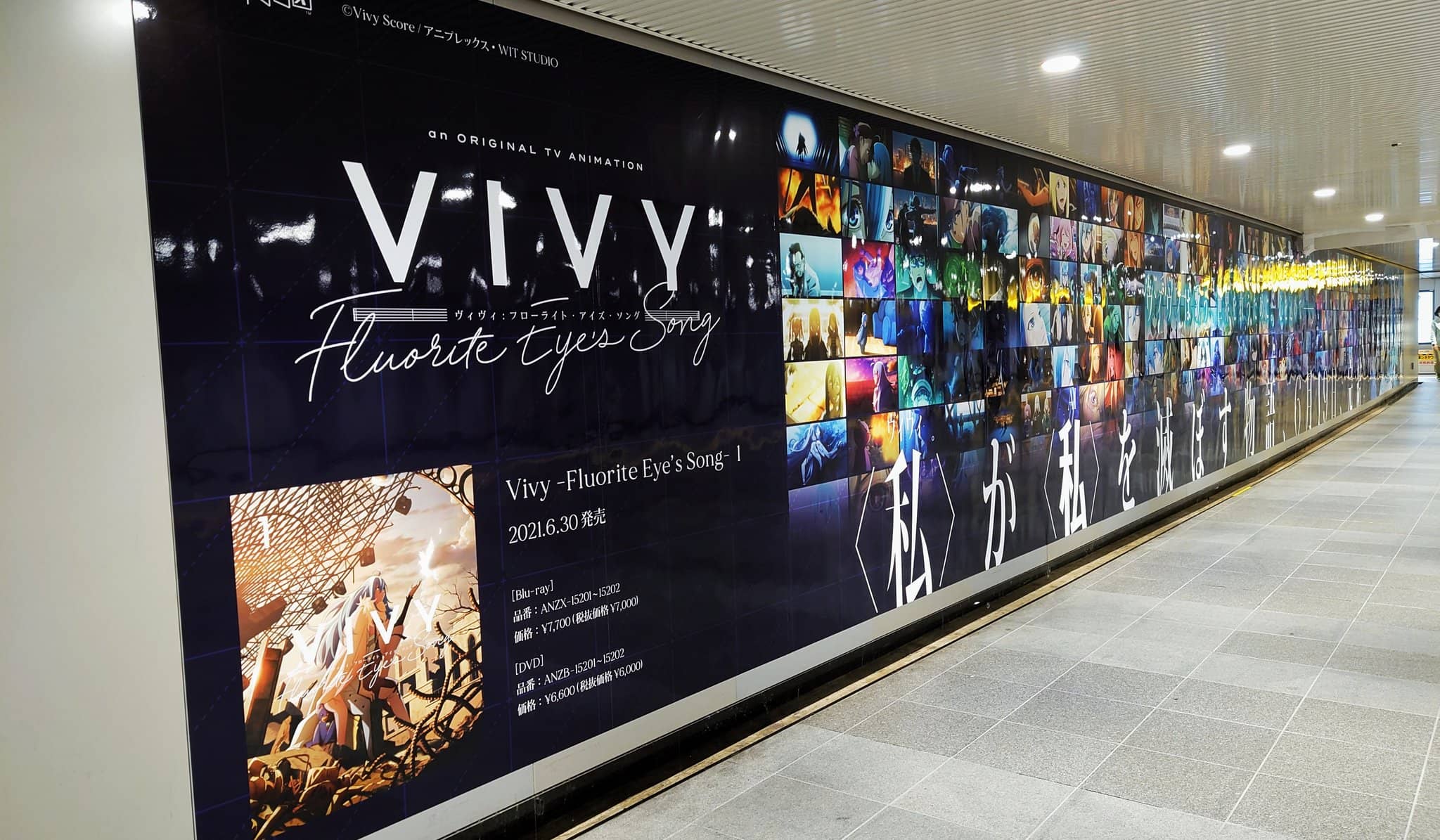 Mediante el popular foro japonés Yaraon se compartieron distintas imágenes donde se podía observar la promoción hecha con motivo del último episodio del anime Vivy – Fluorite Eye’s Song. Cabe mencionar que esta promoción se colocó en el interior de la estación Shibuya en Tokio, entre lo más llamativo del mural se puede observar un collage con distintos fragmentos del anime.