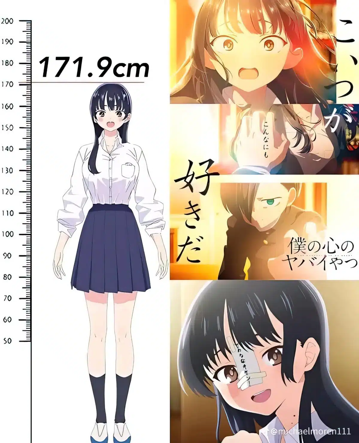 Ya que obteniendo el primer lugar entre las chicas mรกs altas que hay en los romcoms nos encontramos a Anna Yamada de The Dangers in my Heart, la cual llega a destacar con mucha facilidad, por el hecho de que su altura llega a contrastar mucho a lado de Kyoutarou Ichikawa, puesto que al ser muy bajito sus diferentes alturas llegan a sorprender a muchos, pero en sรญ Yamada logra medir aproximadamente 171.9 cm, lo que supera por mucho la altura de varias personas y logra ser la chica mรกs alta de los romcoms.