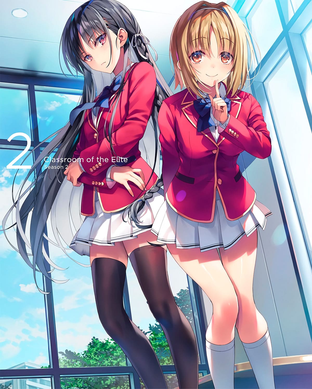 En los medios oficiales para el anime basado en la novela ligera de Shougo Kinugasa y Shunsaku Tomose, ยซYoukoso Jitsuryoku Shijou Shugi no Kyoushitsu eยป (Classroom of the Elite), se revelรณ la portada oficial del segundo volumen Blu-Ray/DVD para la temporada 2 de la serie. Dicha portada es protagonizada por los personajes Suzune Horikita y Kikyou Kushida.
