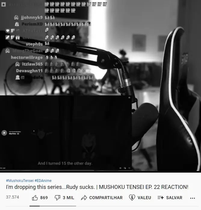Hace mรกs o menos 2 dรญas el Youtuber E.D. Anime, que se dedica a reaccionar principalmente animes en su canal de Twitch y luego resubirlos a su canal de Youtube, pรบblico una video-reacciรณn del capรญtulo 22 de Mushoku tensei, pero lo que destacรณ aquรญ no fue su reacciรณn sino el tรญtulo de su video en YouTube.