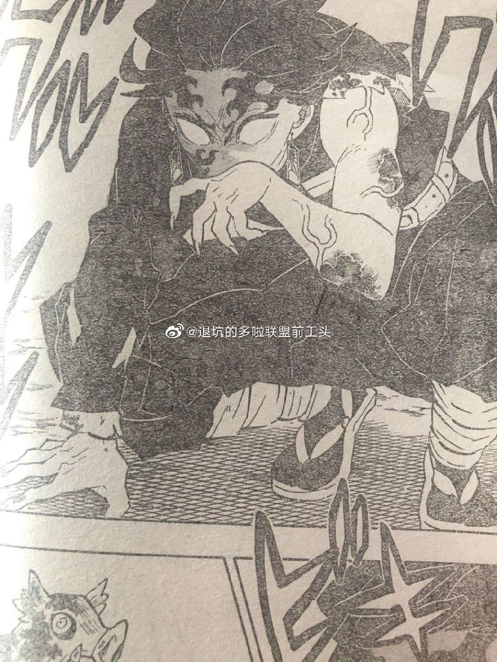 Zenitsu: ¡Qué cruel giro de los acontecimientos! (Inosuke recuerda una conversación entre los tres) “Somos hermanos de armas. Si alguien toma el camino equivocado, debemos detenerlo, sin importar cuán insoportable sea. Debemos caminar por el camino correcto «. Inosuke: lo detendré. Lo mataré Pero cuando su espada alcanzó el cuello de Tanjiro, Inosuke no pudo obligarse a decapitarlo.