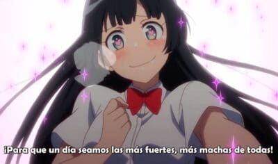 Con todo decidido, Hibiki parece decidida a salir corriendo, hasta que aparece el entrenador, un alegre chico llamado Machio, de aspecto normal y vestido de deporte. En ese momento Hibiki ya encontró su motivación ¡un chico!, al que termina diciéndole «Inscribeme» con una cara de placer que me hizo recordar a las locas de Kakegurui.