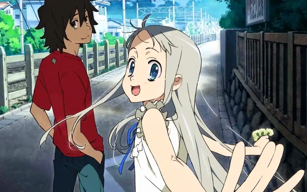 Por otro lado, tenemos a Anohana, un anime slice of life que cuenta la historia de un grupo de amigos de la infancia que se separan debido a un trágico accidente (la muerte de su amiga, Menma) en el cual perdieron su amistad. Jinta, un enérgico chico, que decide reunir a sus antiguos amigos de la infancia, ya que esa amiga que perdieron regresa como un espíritu para cumplir una promesa que hizo antes de morir, dicha misión revelara nuevos y viejos sentimientos en los personajes para conseguir ese único deseo.