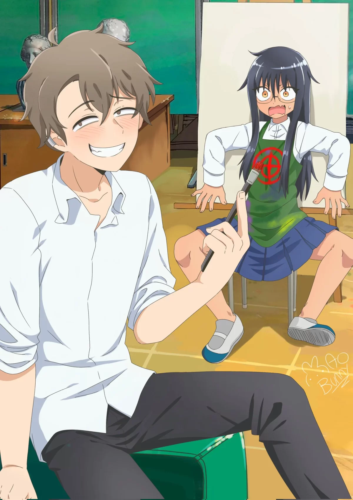 Toda esta graciosa e «invertida» escena transcurre mientras vemos a ambos personajes en el club de arte donde Hayase Nagatoro conoció al senpai por primera vez y en donde comenzó su romántico viaje. Un viaje lleno de travesuras, malos entendidos, situaciones comprometedoras, comedia y uno que otro momento de drama que cautivo a muchos fans del manga y el anime a lo largo de más de 7 años.