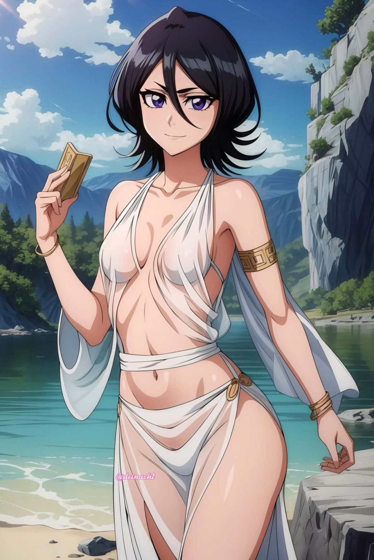 La más hermosa y refinada de todo el universo de Bleach, Rukia kuchiki, la cegadora de almas con un poder que puede congelarlo todo, una luchadora de primera siempre dispuesta a poner su vida en riesgo para defender a sus seres queridos. Hace poco esta cegadora de almas fue recreada en una ilustración hecha con inteligencia artificial luciendo ropas griegas que le hacen ver, sin duda alguna, como una diosa de la mitología griega, ¿estás dispuesto a ver sus encantos?