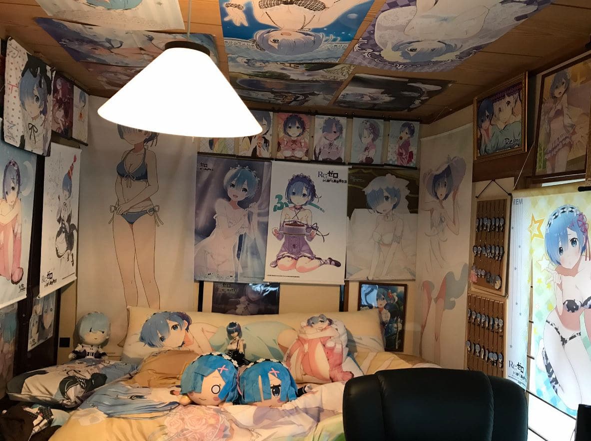 Esto es lo que hizo un Japonés fanático de Rem, personaje del anime Re: Zero que encanto a la mayoría en su momento. En su colección podemos observar decenas de posters, llaveros, peluches, dakimakura y gran variedad de figuras de Rem incluso una de tamaño real.