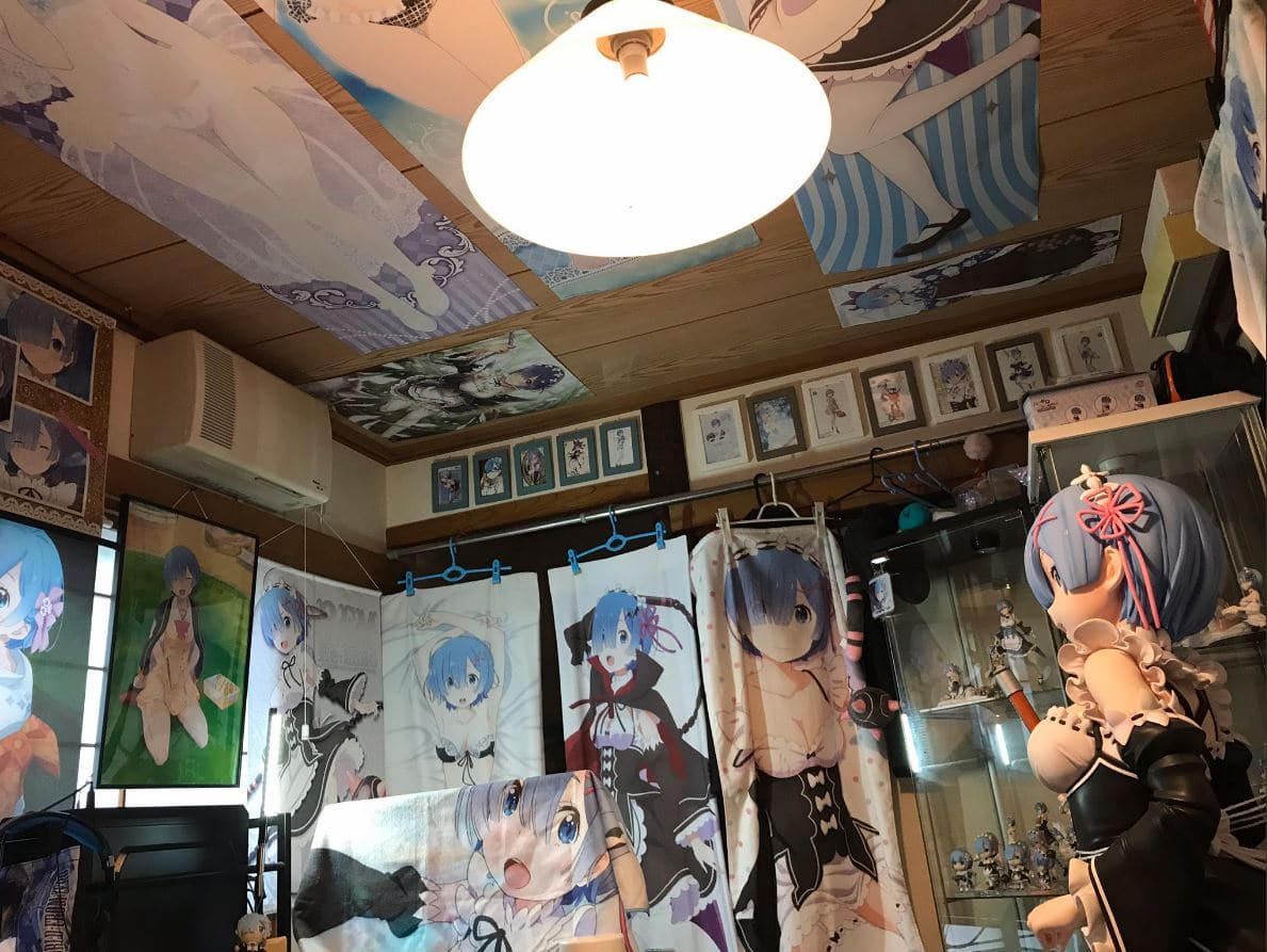 Su cuarto como pueden esta completamente tapizado de poster incluso en las ventanas podemos observar posters de Rem y 5 dakimakura que facilmente podrian costar 150 a 200 dólares.