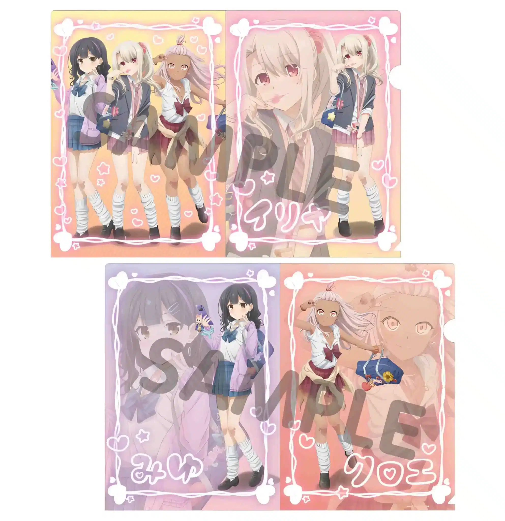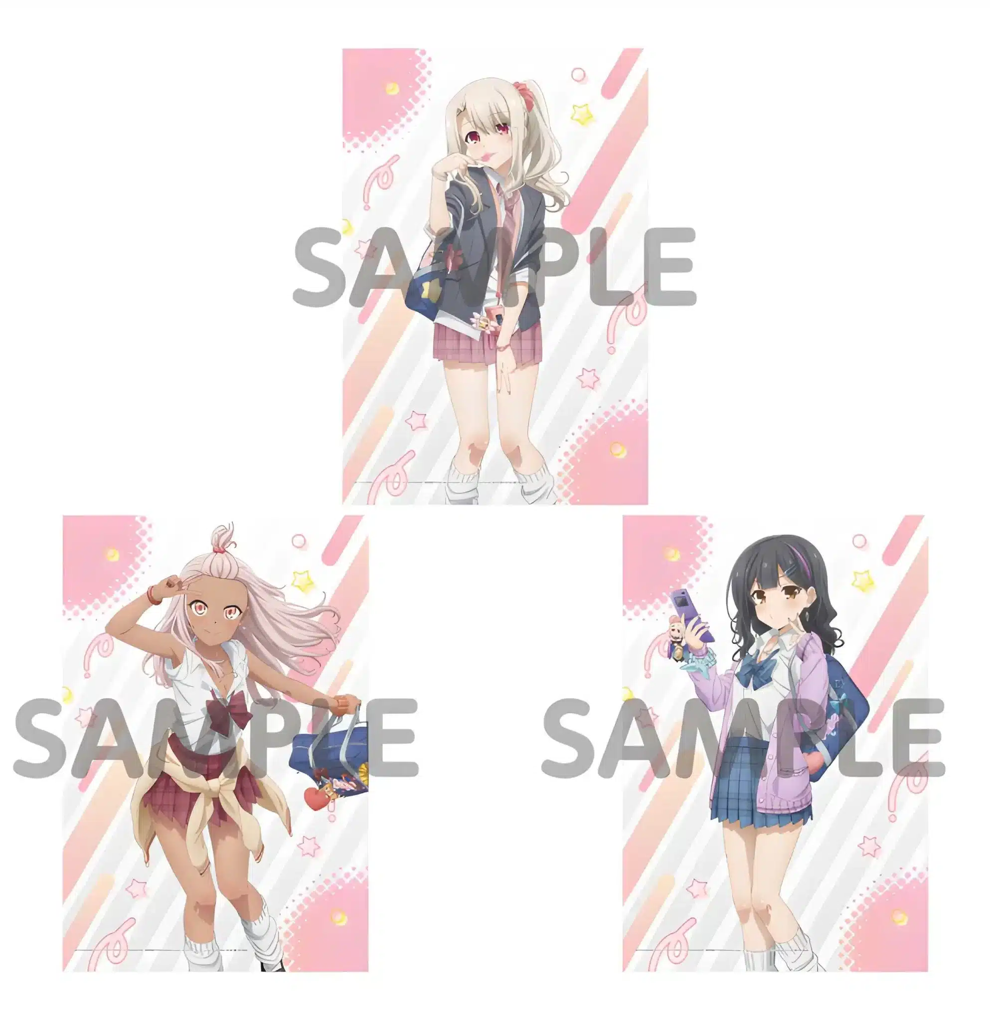 Esta serie de productos de Fate Kaleid estilo escolar estará disponible en las tiendas Don Quijote a partir del 16 de diciembre de este año y hasta agotar existencias. Los siguientes son algunos de los productos de esta línea especial de Fate Kaleid: