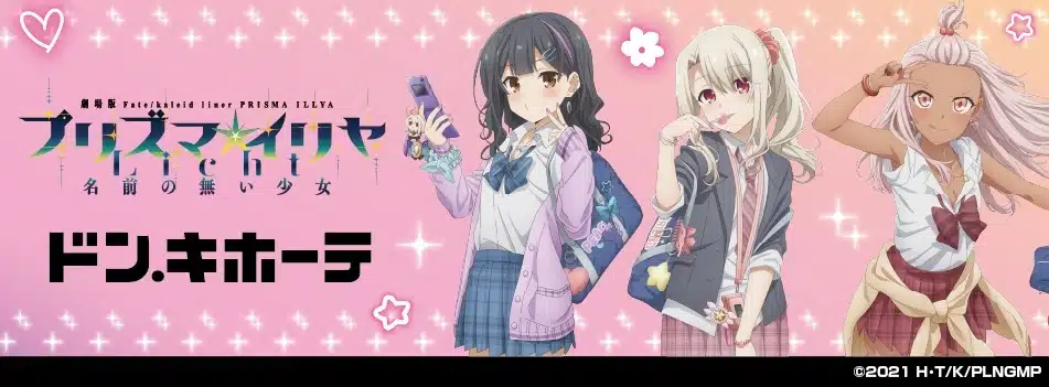 En esta ocasión, la cadena de tiendas Don Quijote, a través de su cuenta oficial de X dio a conocer su increíble colaboración con la famosa franquicia Fate Kaleid liner Prisma Illya. Se trata de una línea de productos exclusivos inspirados en su último film de 2021: «Fate/kaleid liner Prisma ☆ Illya Licht Nameless Girl».