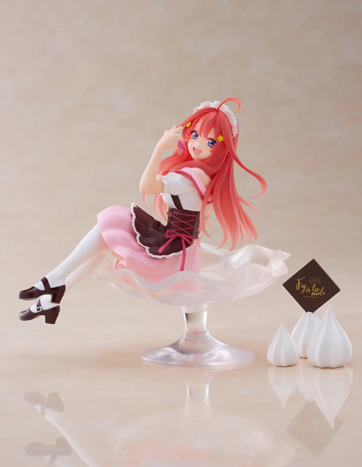 Fiel al carรกcter glotรณn de Itsuki, la figura la representa sosteniendo un apetitoso macarrรณn entre sus delicados dedos. Su sonrisa radiante y encantadora ilumina su rostro, reflejando la alegrรญa y la dulzura que caracterizan su personalidad. Cada aspecto de esta representaciรณn captura la esencia de Itsuki Nakano, desde su amor por la comida hasta su encanto natural.