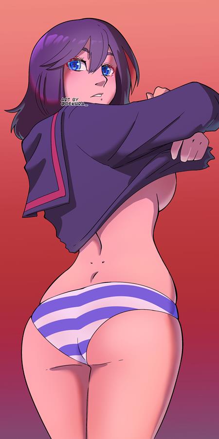 Redibujo de la escena de Ryuko de Kill la Kill desvistiéndose hecho por otros artistas