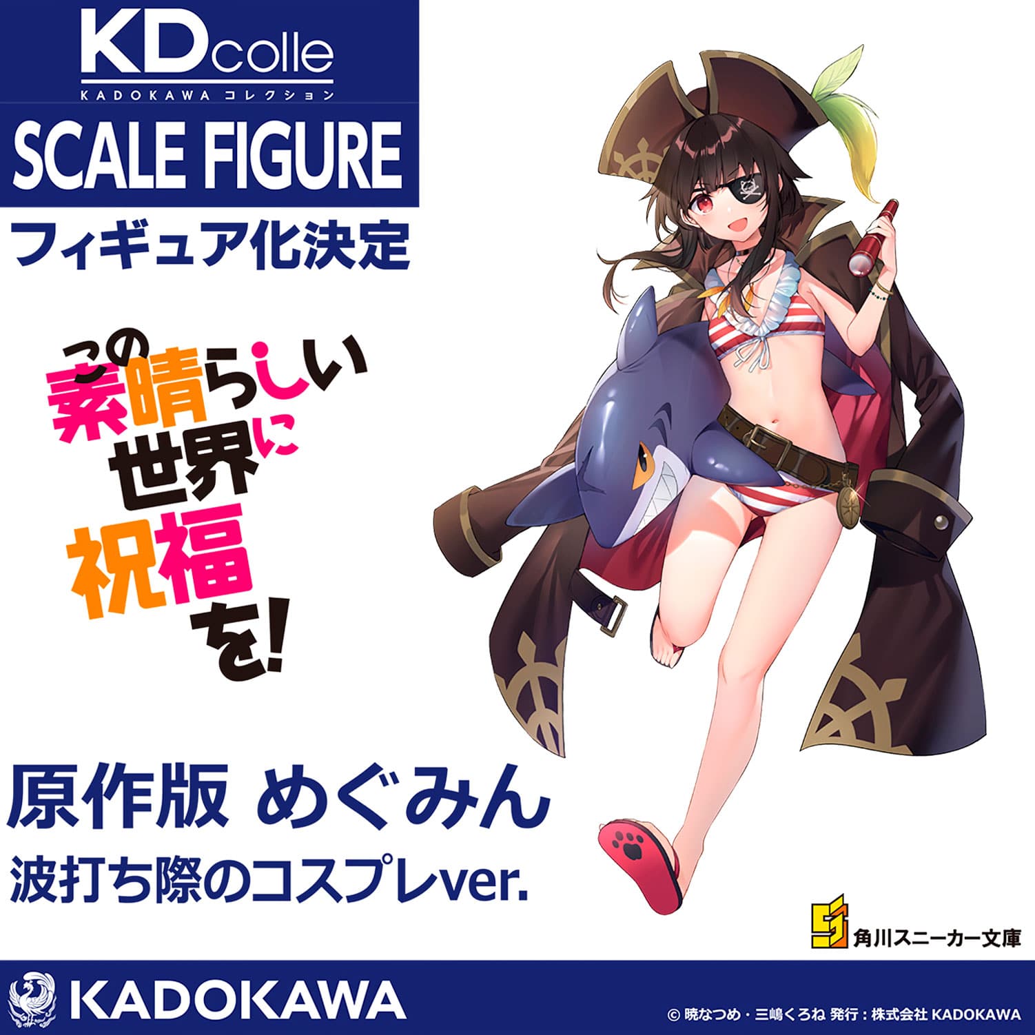 Para esta nueva figura, que será lanzada en un futuro, la compañía Kadokawa ha decidido reimaginar a Megumin de una manera desconocida para el ojo del público, convirtiendo a esta waifu en una encantadora, pero temible, pirata. De manera adicional, en la cuenta de Twitter oficial de KDcolle se ha presentado una imagen promocional para este increíble producto.
