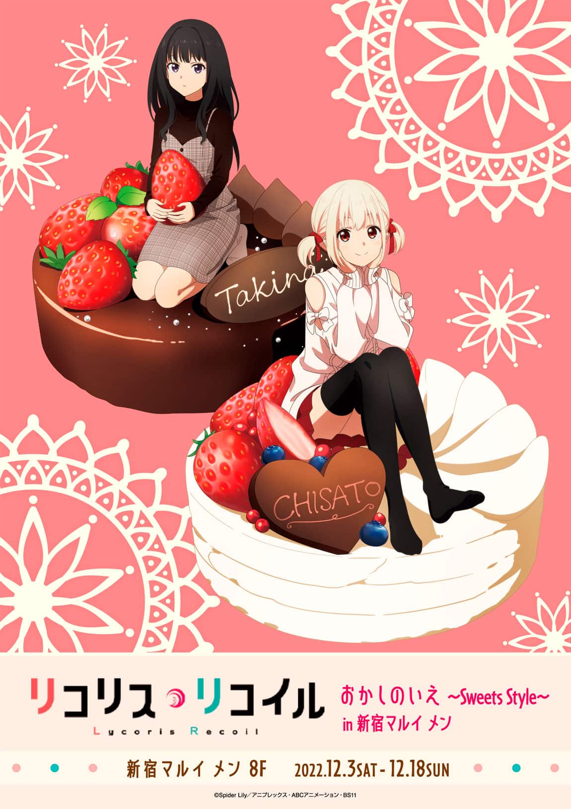 En esta ocasiรณn, la compaรฑia que anunciรณ una colaboraciรณn con el anime Lycoris Recoil fue Anime University COOP, y por medio de su cuenta de Twitter y su sitio web oficial, presentรณ al pรบblico esta curiosa colaboraciรณn que tendrรก como protagonistas a las waifus Chisato Nishikigi y Takina Inoue, quienes inspirarรกn algunos productos con una temรกtica especial, en donde unos apetitosos pasteles predominan en el escenario de la visual.
