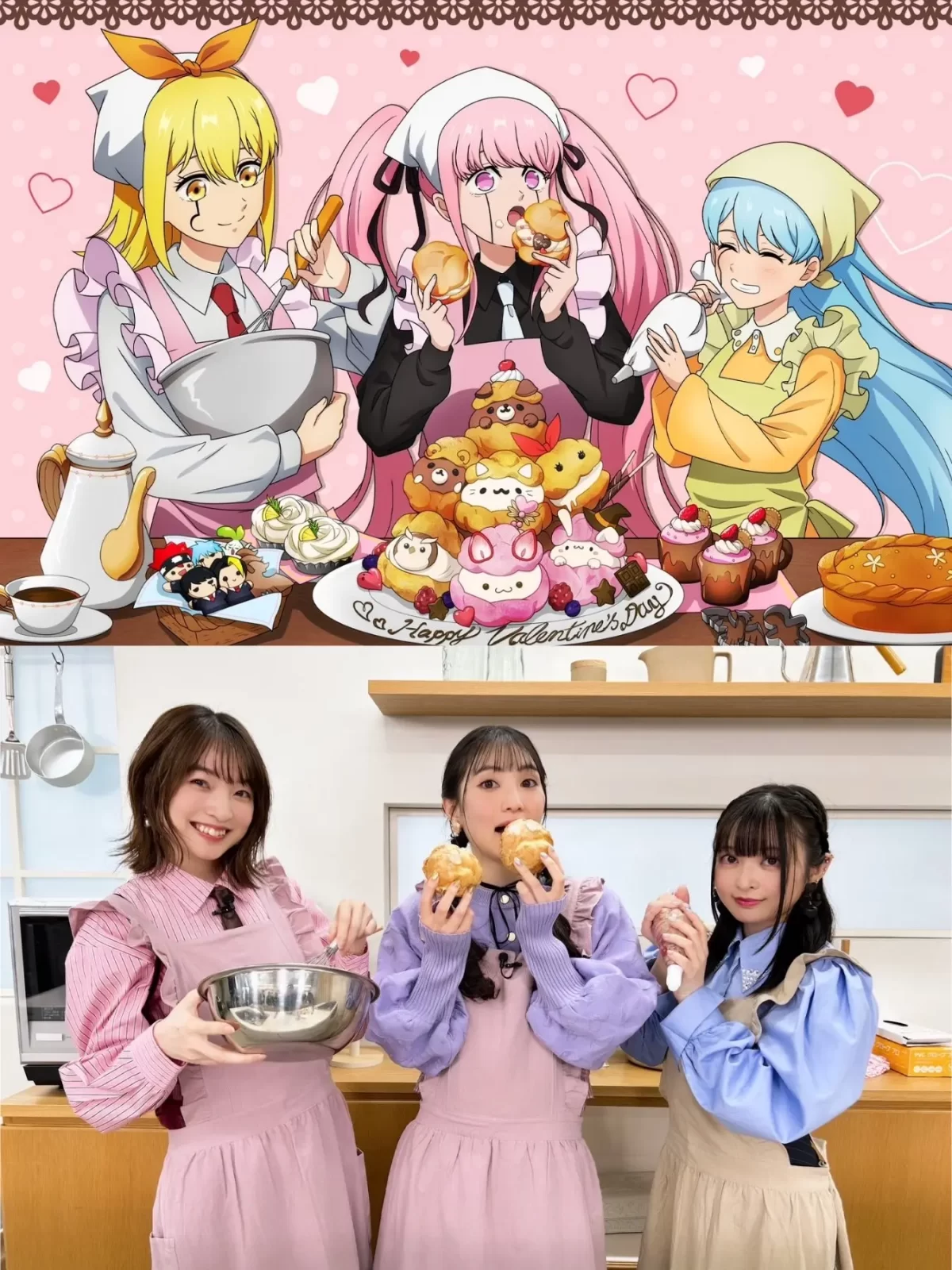 Vale la pena destacar que esa hermosa visual de los personajes Lemon Irvine, Love Cute y Anna Crown ha tomado cierta inspiración en una fotografía que la cuenta de Twitter/X oficial del anime «Mashle: Magic and Muscle» ha presentado hace unos días, en donde podremos ver a las actrices de voz Reina Ueda (voz de Lemon), Aoi Koga (voz de Love) y Riona Imaizumi (voz de Anna) pasar un buen rato en una cocina mientras preparan ciertos pasteles.