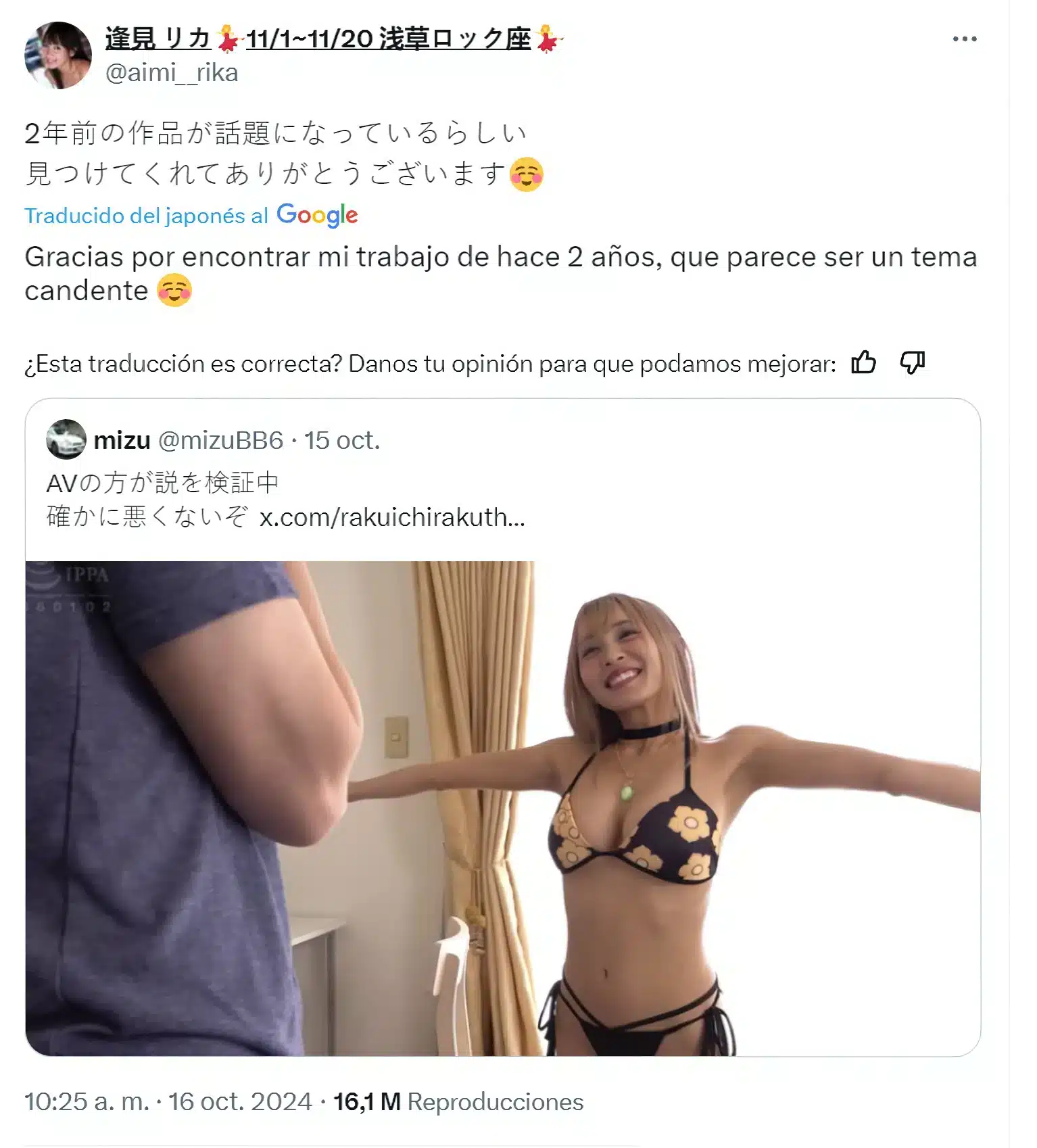 La enorme repercusiรณn que esta escena tuvo en redes sociales llegรณ a Aimi Rika, la actriz que interpretรณ a Marin Kitagawa en esta versiรณn H de My Dress-Up Darling, quien a travรฉs de su cuenta de X personal se sorprendiรณ por como uno de los trabajos en que ella participรณ hace dos aรฑos gano una enorme repercusiรณn de una manera repentina, agradeciendo a todos los fans que hicieron esto posible.