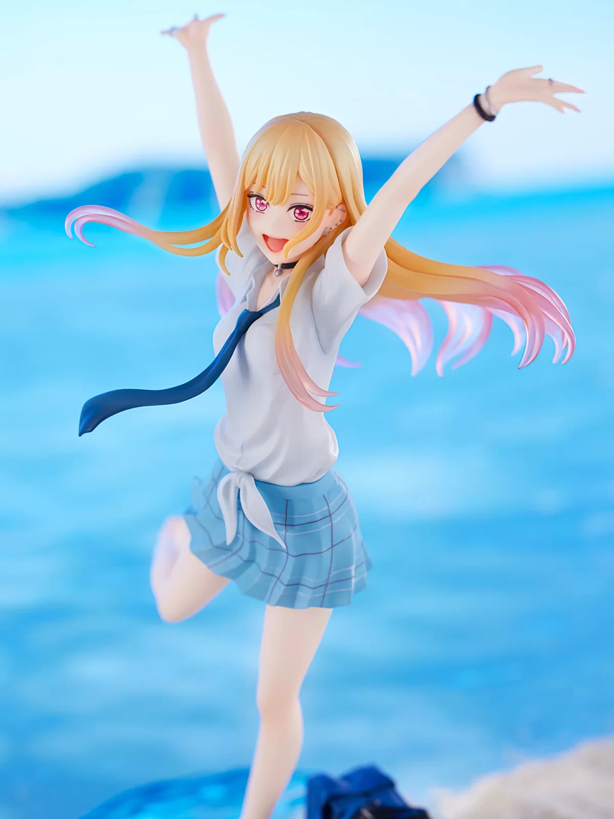 La asombrosa figura reciรฉn presentada por la compaรฑia FuRyu captura la alegrรญa y felicidad del personaje Marin Kitagawa, transportรกndonos a un idรญlico escenario de playa que rinde homenaje a la inolvidable escena del episodio #8 de la adaptaciรณn al anime de My Dress-Up Darling, donde los protagonistas visitan la playa despuรฉs de las clases.