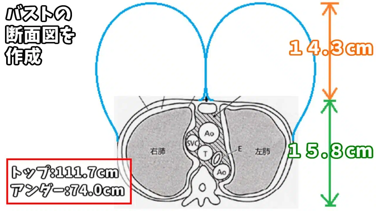 Como siempre Hikari ha publicado una serie de imágenes en las cuales se detalla el proceso que realizo para obtener las medidas de Shinju Inui, parece ser que para calcular el tamaño de busto, utilizo varias imágenes de referencia del anime en las cuales mide desde la caja torácica hasta el pecho, y según las estimaciones Shinju mide alrededor de 178 cm de alto con una banda del busto de 74 cm, mientras que la separación tendría una medida aproximada de 14.3 cm y en una sección transversal tiene un tamaño aproximado de 111.7 cm, lo que supondría unas grandes medidas.