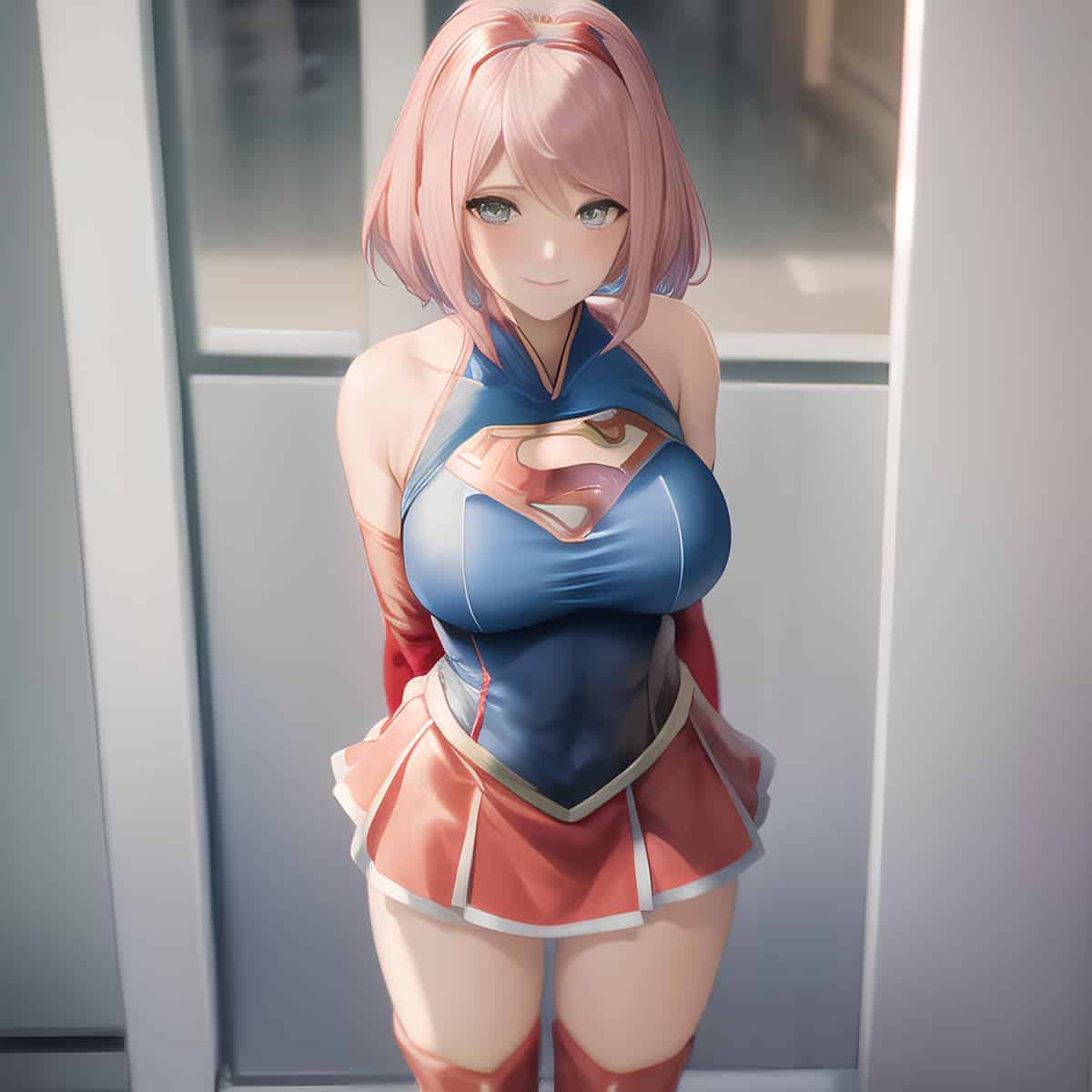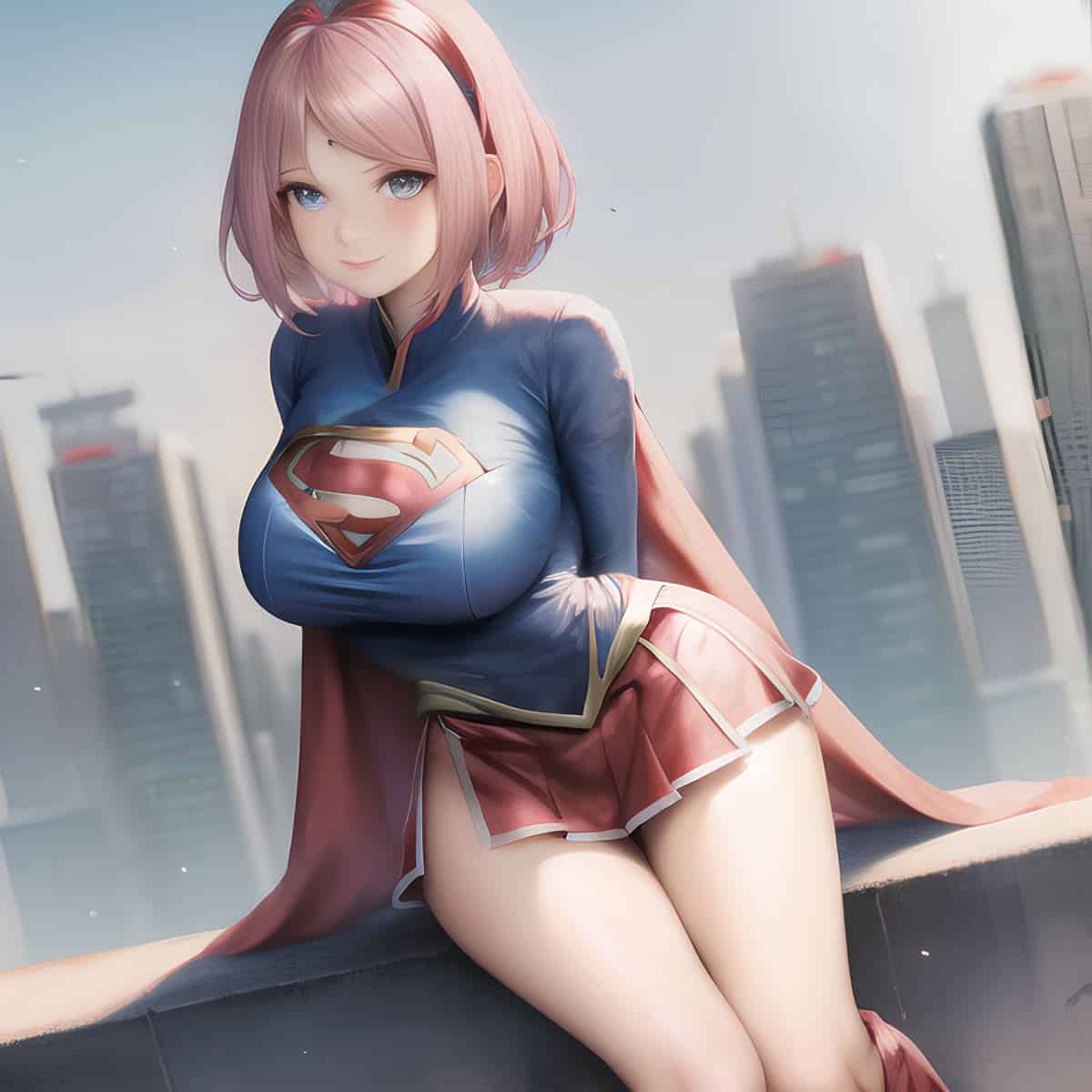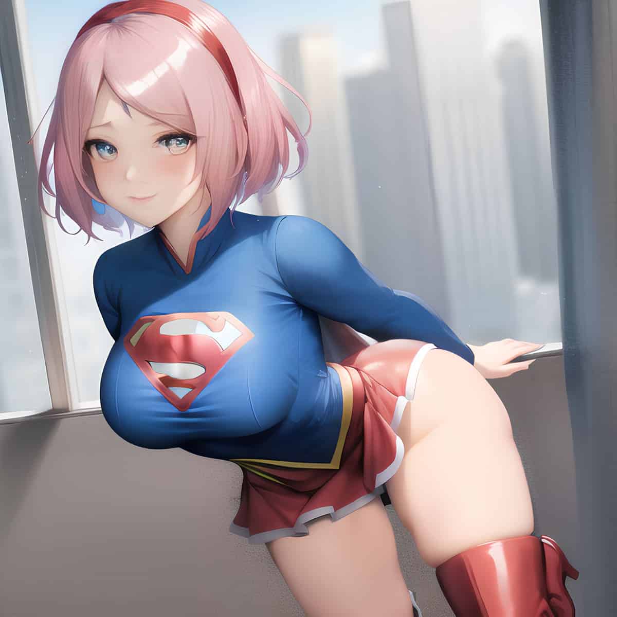 En estas ilustraciones protagonizadas por Sakura Haruno, la podemos ver en una versión nunca antes vista, ya que la podemos ver que el autor la ha convertido en una linda superheroina, más especifico, Superwoman, la cual de seguro lograra cautivar a cualquier persona que vea esta ilustración por la forma en que fue recreada el personaje, sin duda alguna llamara la atención de cualquier persona.