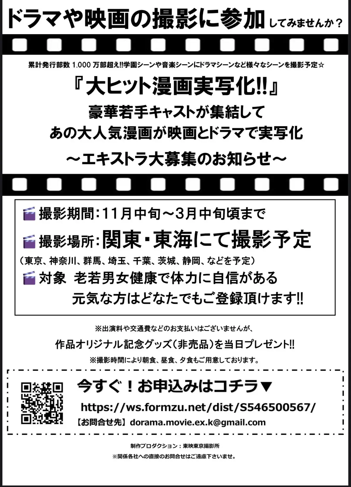 Resulta ser que a través de X antes Twitter el usuario llamado «@EX_KT08» encargado de difundir reclutamientos y casting para series y películas en Japón, ha lanzado una nueva convocatoria que nos hace sospechar que «Oshi no Ko» es quien está buscando actores para una nueva producción live-action, pues el usuario ha compartido también una imagen donde se detalla de manera precisa que se buscan actores y actrices jóvenes para papeles de extras para una producción con «escenas escolares, dramáticas y musicales» para traer a la vida un «exitoso manga con más de 10 millones de copias en circulación».