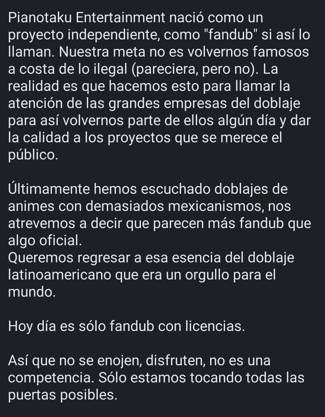 De manera adicional, Pianotaku Entertainment ha realizado una publicación en su cuenta de Facebook en el que habla un poco más sobre la polémica.