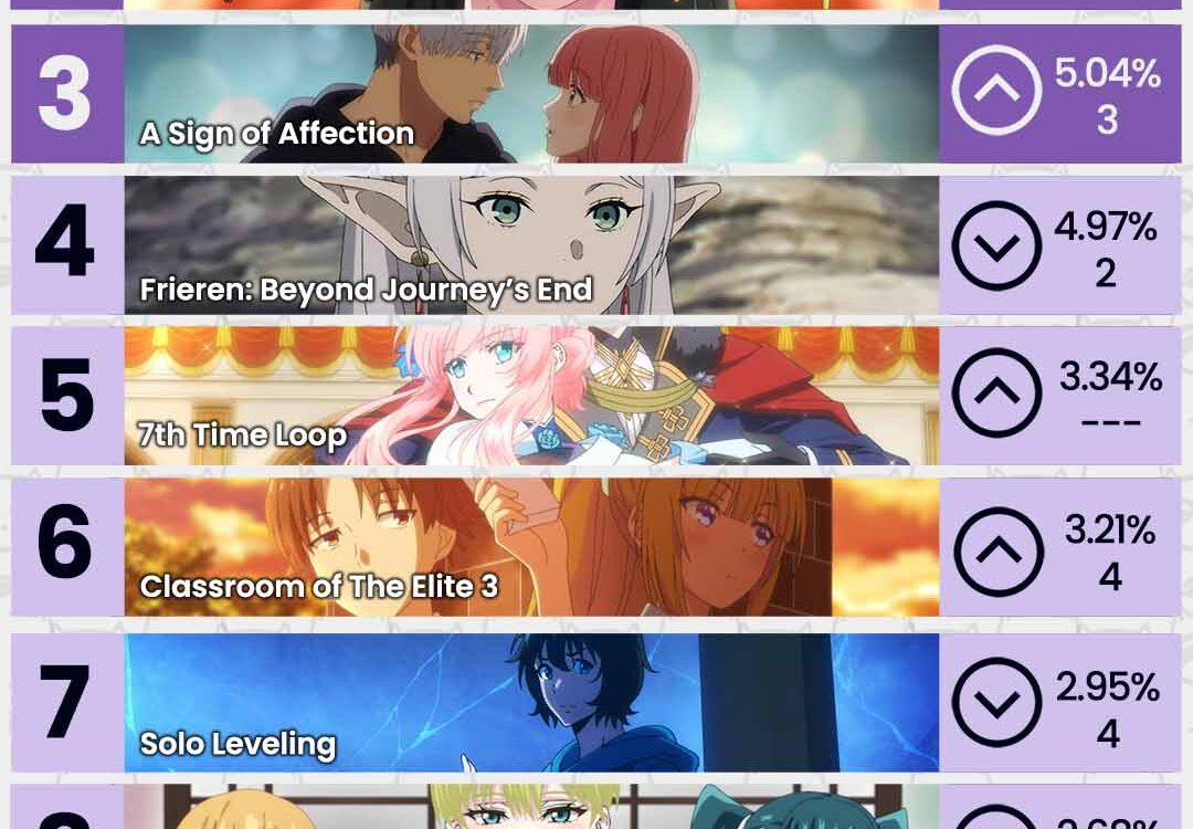 Los animes The Dangers in My Heart S2, The Apothecary Diaries y A Sign of Affection se ubican en el podio esta semana.