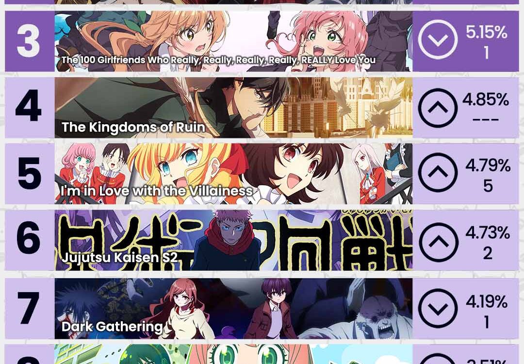 Los animes Frieren: Beyond Journey’s End , The Emminence in The Shadow S2 y The 100 Girlfriends Who Really, Really, Really, Really, REALLY Love You se ubican en el podio esta semana.