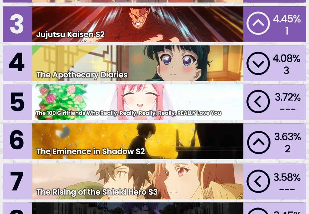 Los animes SPYxFamily S2, Frieren: Beyond Journey’s End y Jujutsu Kaisen S2 se ubican en el podio esta semana.