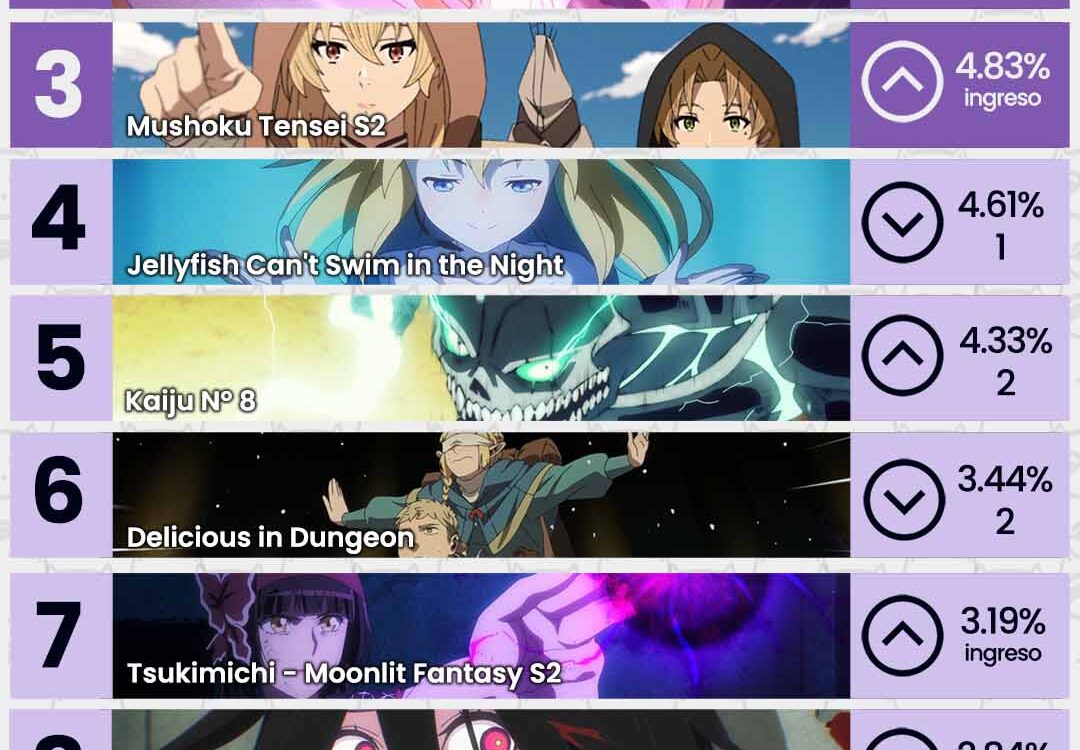 Los animes Date A Live V, KONOSUBA S3 y Mushoku Tensei S2 se ubican en el podio esta semana.
