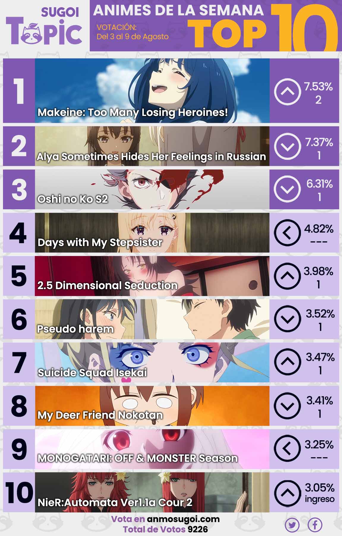 Además, te recomendamos seguir a Sugoi Topic en Facebook y Twitter para estar al pendiente de los nuevos estrenos y las publicaciones de nuestras votaciones.