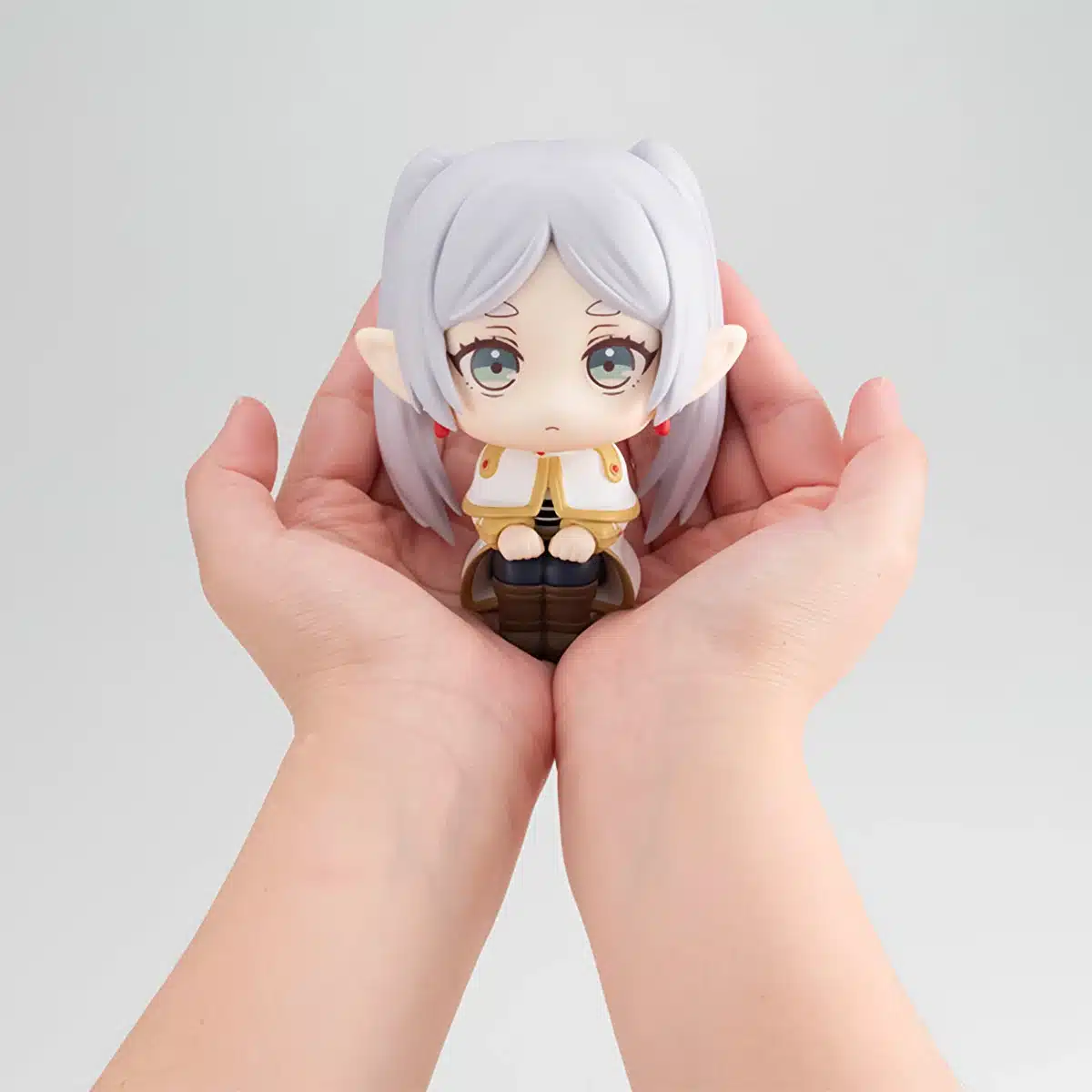 Sin embargo, lo curioso de esta fascinante figura de Frieren es su peculiar tamaño: gracias a sus 110 mm de altura, tendrás la oportunidad de tener a la habilidosa maga Elfa en las palmas de tus manos, lo que te permitirá apreciar la adorable versión de este personaje tan querido por la comunidad otaku.