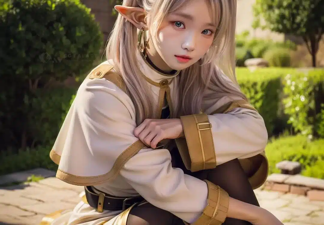 El usuario en Instagram llamado «cg.ai.art» nos ha regalado una imagen generada por inteligencia artificial que nos muestra como sería la linda elfa Frieren de «Sousou no Frieren» si fuese una chica «real». Como podemos ver aquí Frieren se nos muestra posando de una linda forma sentada en cuclillas mientras podemos admirar todos los detalles que componen esta versión realista, ataviada de su típico vestido color blanco con detalles en dorado, hace resaltar la elegancia y el esplendor de esta chica, al mismo tiempo que vemos el magnífico trabajo realizado, pues los dobleces y las arrugas del vestido nos dan una sensación muy real.