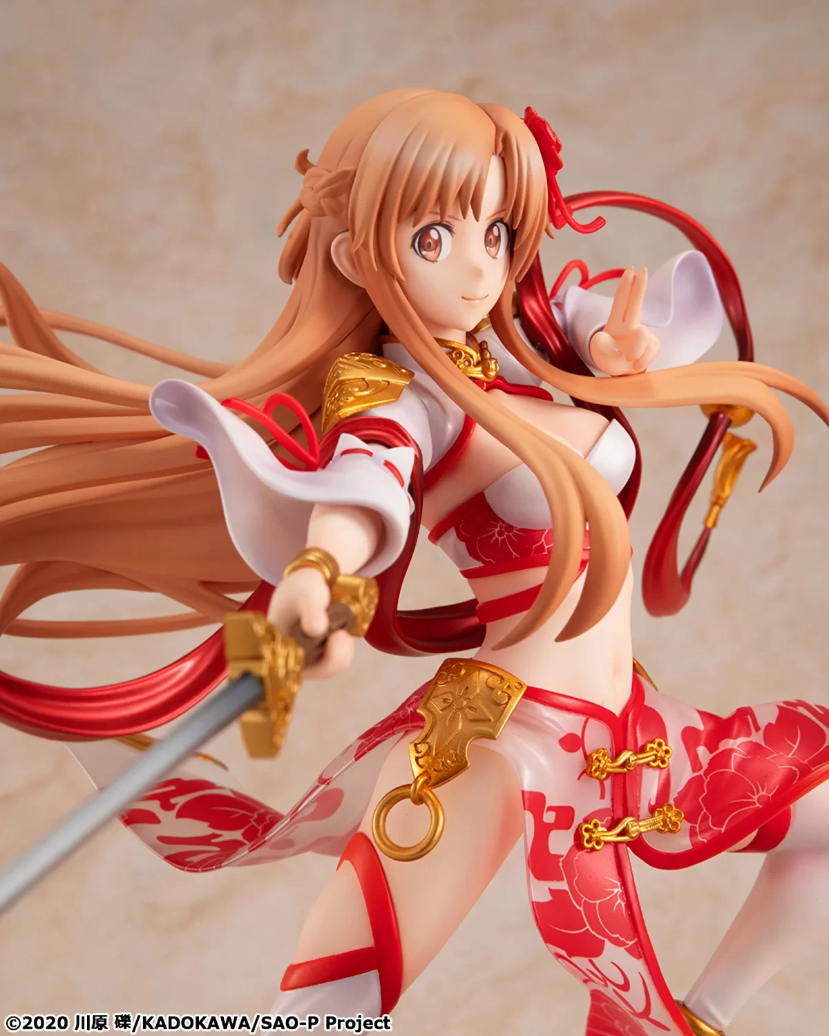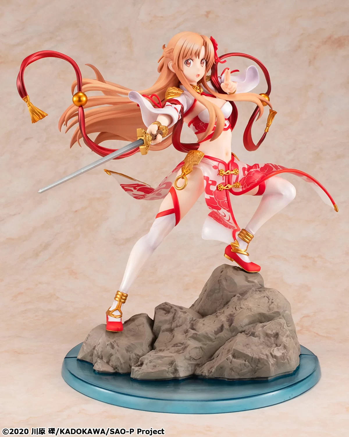 Esta impresionante figura de Asuna Yuuki cuenta con una curiosa particularidad y es que se la ha vestido con un atuendo de combate chino que nos presenta una nueva versiรณn del personaje al utilizar un estilo de combate diferente al que estamos acostumbrados en ella.
