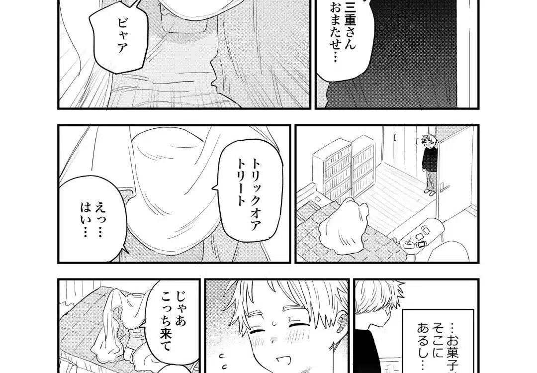 Estos paneles fueron compartidos el pasado 30 de octubre por Koume Fujichika, mangaka de The Girl I Like Forgot Her Glasses, mediante su cuenta de X/Twitter sin ninguna descripciรณn sobre lo mostrado. En esta parte podemos apreciar a Ai Mei tratando de espantar a Kaeda Komura sin obtener resultados, pues este solo se muestra un poco sorprendido para posteriormente regalarnos una pequeรฑa sonrisa.