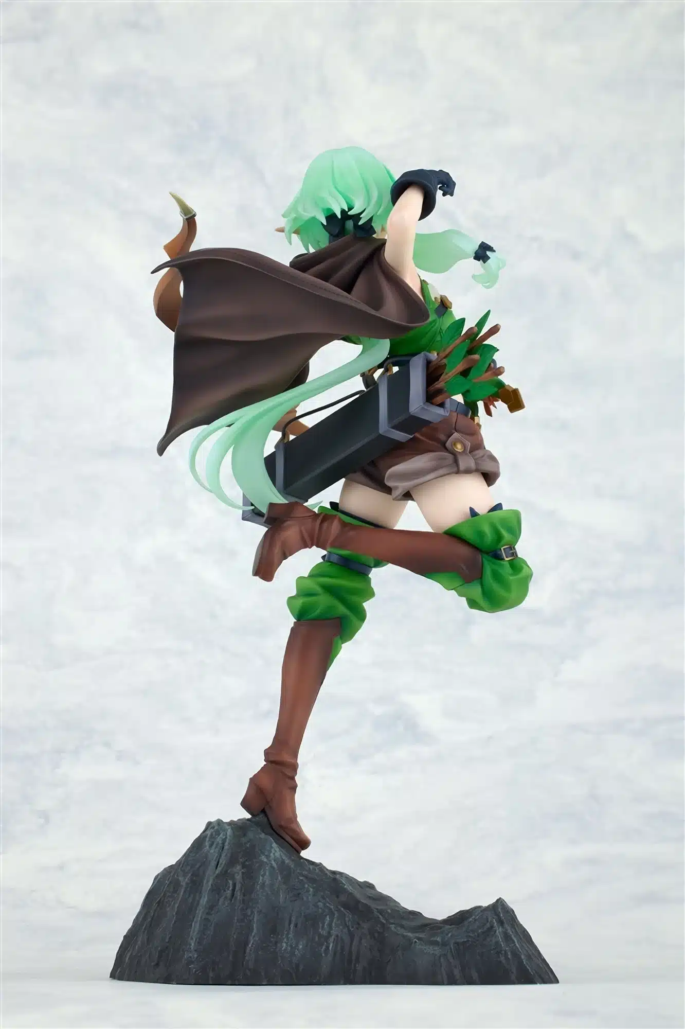 En las capturas de la figura de la Elf Archer que presenta la compañía KADOKAWA, se puede apreciar el enorme trabajo que se ha realizado a la hora de plasmar toda la belleza del personaje. Además, su vestimenta, la cual está conformada por un corsé de arquera verde, pantalones cortos, un par de guantes negros desiguales, botas altas hasta la rodilla y una capa, ha sido esculpida de manera magistral y es que se han resaltado ciertos pliegues y arrugas en la ropa, añadiéndole un gran nivel de dinamismo que encantará a las personas que aman que las figuras a escala cuenten con este tipo de detalles.