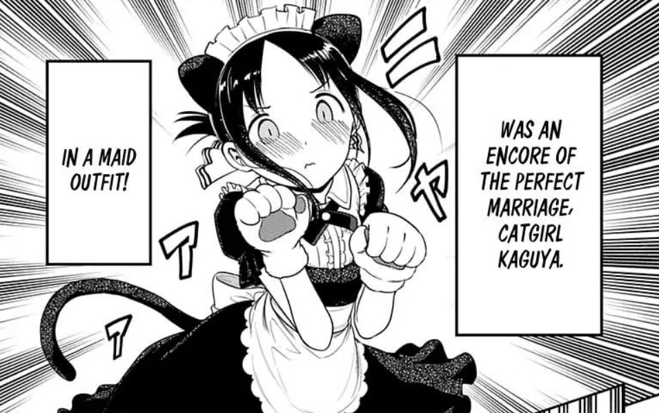 El capítulo 138 del manga de Kaguya-sama, comienza con Kaguya contando todos los detalles sobre la declaración y el beso del presidente, como se menciona en la serie, Kaguya nuevamente es víctima de su «inocencia» y comete el error de darle un beso francés a Miyuki, debido a los consejos que recibió de Nagisa.