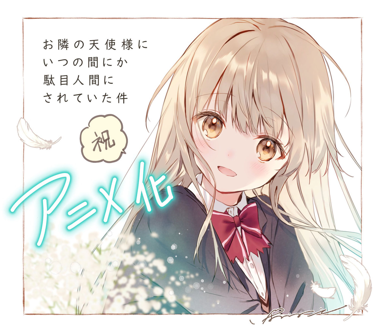 Para celebrar el anuncio de la adaptación al anime para la novela ligera Otonari no Tenshi-sama ni Itsu no Ma ni ka Dame Ningen ni Sareteita, su ilustrador original Hanekoto publicó una ilustración especial en su Twitter personal.