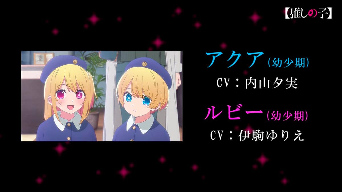De manera adicional, el sitio web oficial del anime Oshi no Ko ha presentado a los nuevos integrantes del elenco de voz que participara en la serie, junto a una increíble imagen visual protagonizada por los personajes Ai Hoshino y una versión joven de Aqua Hoshino y Ruby Hoshino.