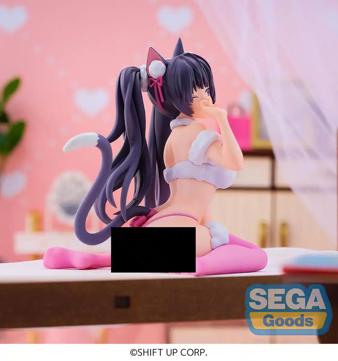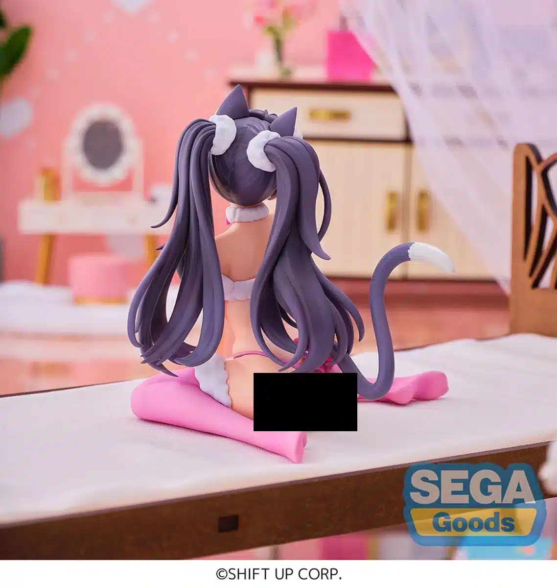 En la parte baja, Nero tiene medias rosas que le cubren todas las piernas, teniendo estos a su vez los mismos detalles del collar, las orejas y sujetador. La parte trasera de la figura dejará sin aliento a todo el fandom de Nikke, pues posee una larga cola de gato ondulada y un sensual atuendo rosa muy ajustado y demasiado bello nunca antes visto en una figura de este personaje femenino de Nikke